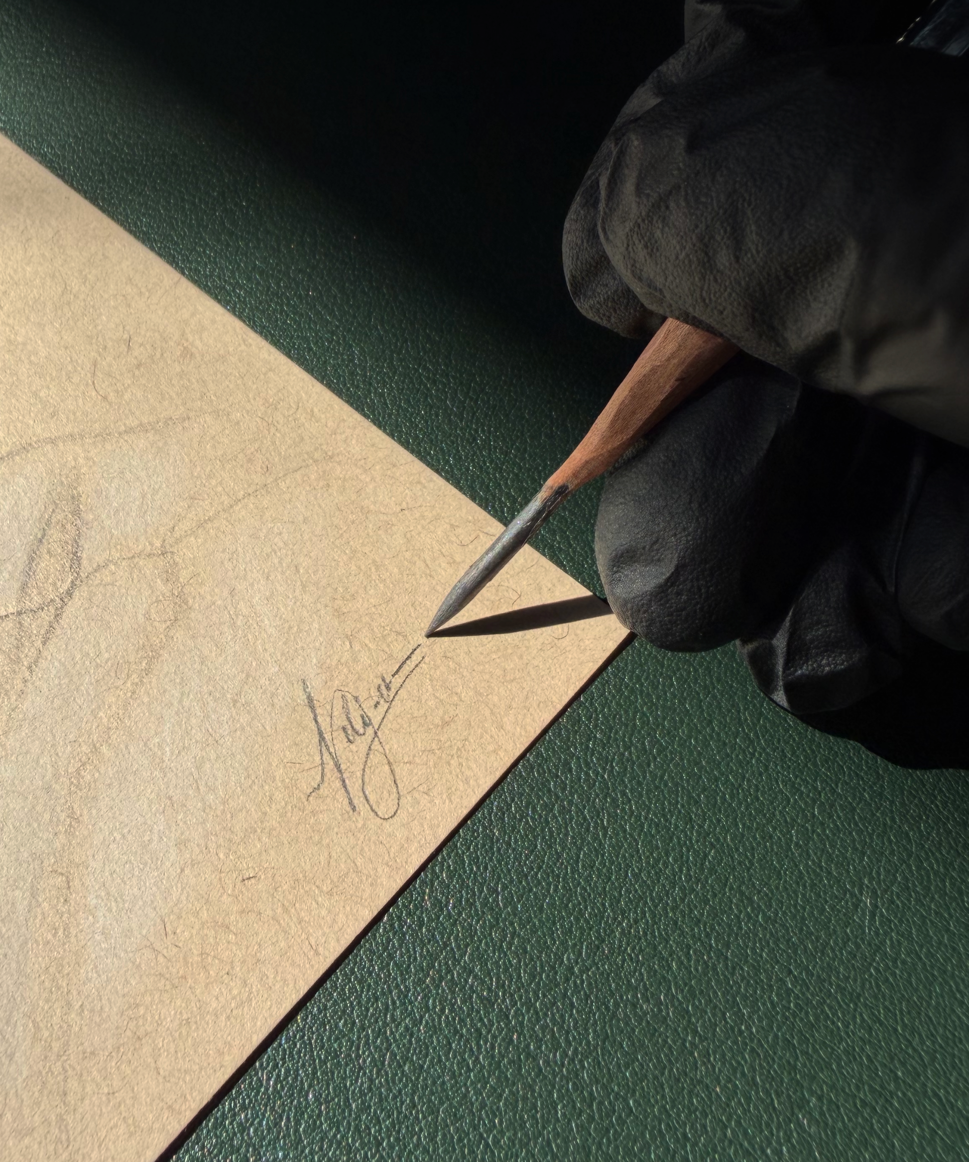Graphite & white charcoal on toned tan paper, 118gsm.